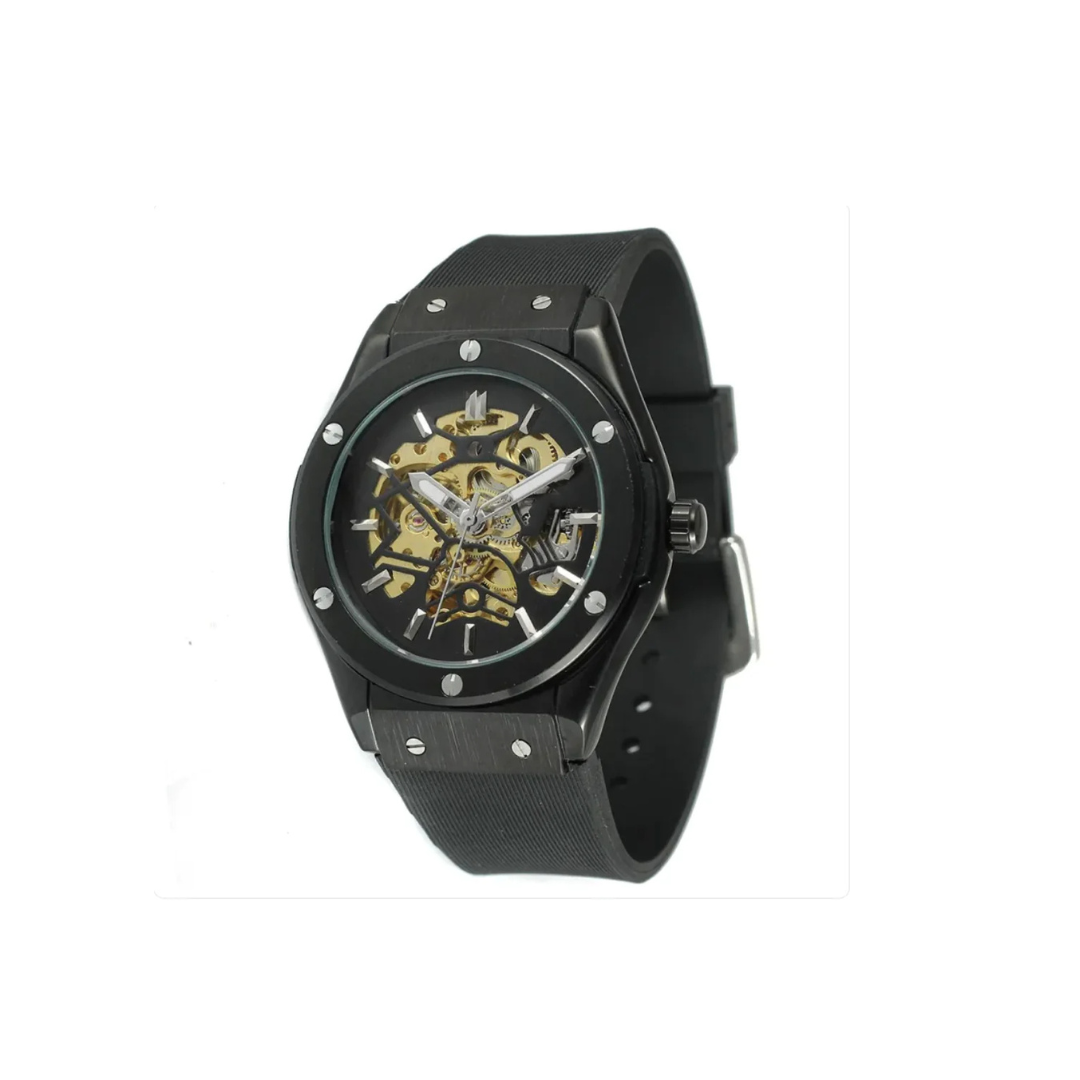 Upgrade your look with this fashion-forward automatic watch, designed for comfort and style. Featuring a durable alloy case, flexible rubber strap, and mineral-strengthened glass, this timepiece blends elegance with everyday practicality.